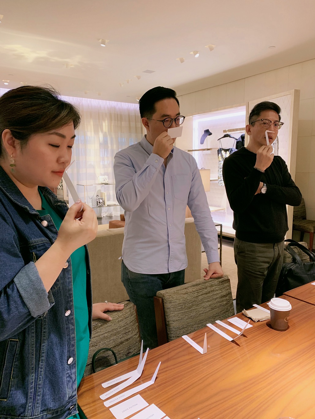 藍色的瓶身象徵海洋。起首是超逼真的意大利西西里橙和非常純淨的柑,為香水提綱挈領,注入一股奔放的柑橘香。Celine給我們遞上香水原材料用的橙和柑精油,不得了,質素之優越教我們驚訝。活力四射的柑橘香過後,香味變化成帶有淡淡果香和濃濃海鹽味的海洋調。Jacques Cavallier曾調製過不少著名的水調香水,的確不是浪得虛名。雖然同樣是水調,但 AFTERNOON SWIM 絕對有層次,亦十分持久。